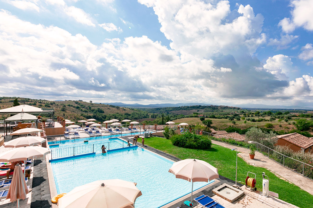 ristorante a buffet con cucina tipica maremmana, piscina esterna con vista panoramica con aerea dedicata ai bambini, attrezzata con ombrelloni e lettini. Bar, parcheggio, giardino, animazione stagionale per adulti e bambini con organizzazione di attività sportive. Possibilità di noleggio biciclette ed escursioni nei dintorni. Animali ammessi di piccola taglia (su richiesta e a pagamento).