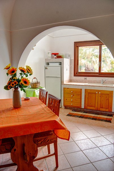 Gli spazi esterni di questa soluzione rispecchiano esattamente quelli dei tipici dammusi: giardino arabo, agrumi, piantagioni mediterranee, palme che circondano l'ampia piscina. Gli interni sono caratterizzati dalla presenza di un'ampia camera da letto matrimoniale con servizi, una cucina e una zona living con poltroncine e tv. Oltre al rigoglioso giardino avrete a disposizione anche un terrazzo coperto con barbecue in muratura, ideale per le vostre cene o pranzi all'aperto.
