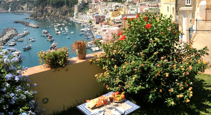 Antico palazzo gentilizio risalente al XVIII secolo accuratamente ristrutturato, la cui felice posizione nel centro storico, con splendida vista sul mare e sul caratteristico borgo dei Pescatori di Marina Corricella, può definirsi turisticamente “strategica”. Essa infatti, consente di raggiungere agevolmente sia l’acropoli di Terra Murata sia il porto commerciale.