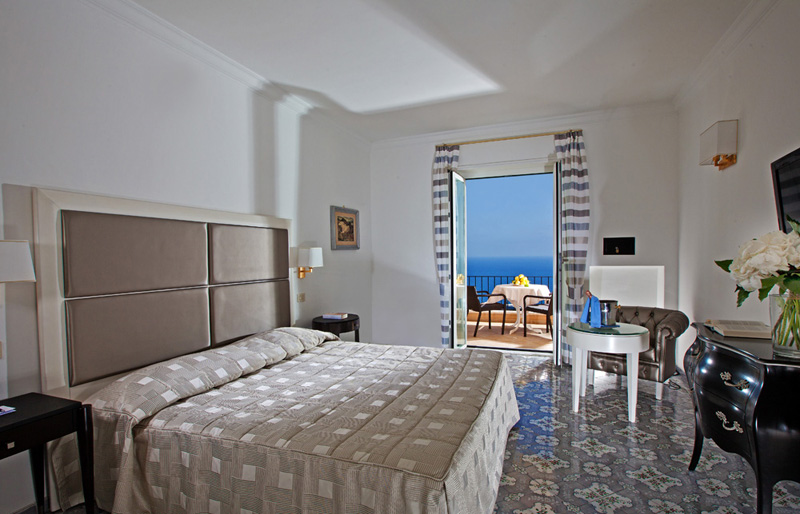 Tutte con servizi privati, phon, telefono, tv-sat, Wi-Fi, minibar ed aria condizionata. Si suddividono in: standard, arredate in stile classico, affacciano sulla piccola corte interna dell’hotel; superior, sempre in stile classico con terrazzo e vista panoramica sulla caratteristica Certosa di San Giacomo, sul Monte Tuoro e sul giardino dell’hotel lateralmente al mare; de luxe, in stile moderno/classico, con terrazzo e vista mare frontale direttamente sui Faraglioni.