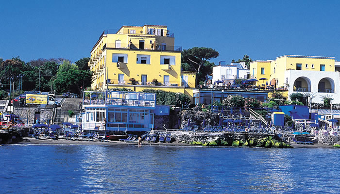 Centrale, a pochi passi dalla spiaggia, dal rinomato Corso Vittoria Colonna e dalla “Piazzetta”. Si compone di un corpo centrale di tre piani e due laterali distaccati.