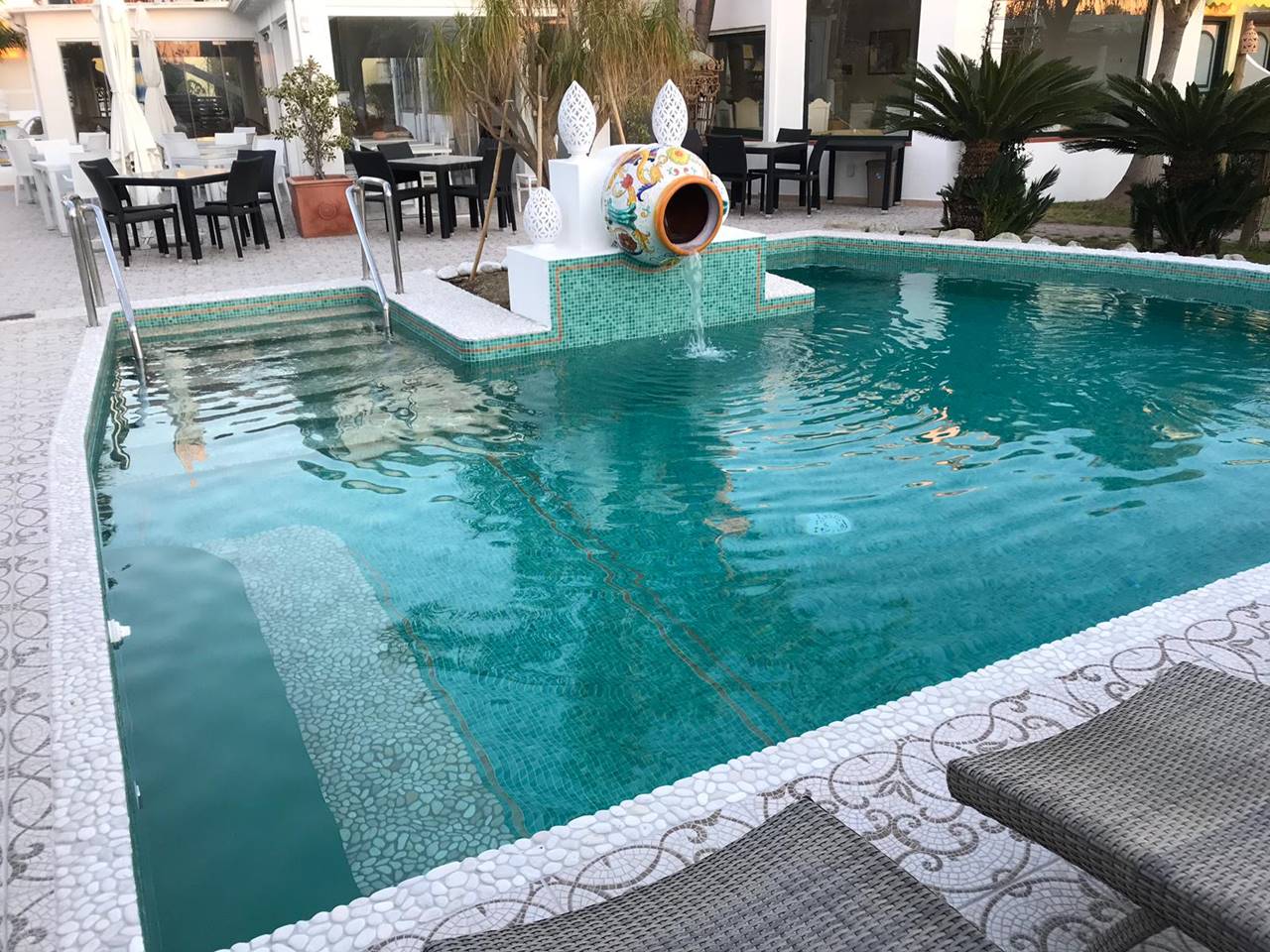 in prossimità di bellissime spiagge e a 10 minuti dal centro storico. La struttura, di nuovissima ed elegante costruzione, offre un soggiorno all'insegna del benessere e del relax. L'albergo si affaccia sul versante occidentale dell'isola. E’ circondato da un giardino che si estende su 4000 mq dove si possono ammirare piante particolari, da quelle esotiche a quelle mediterranee